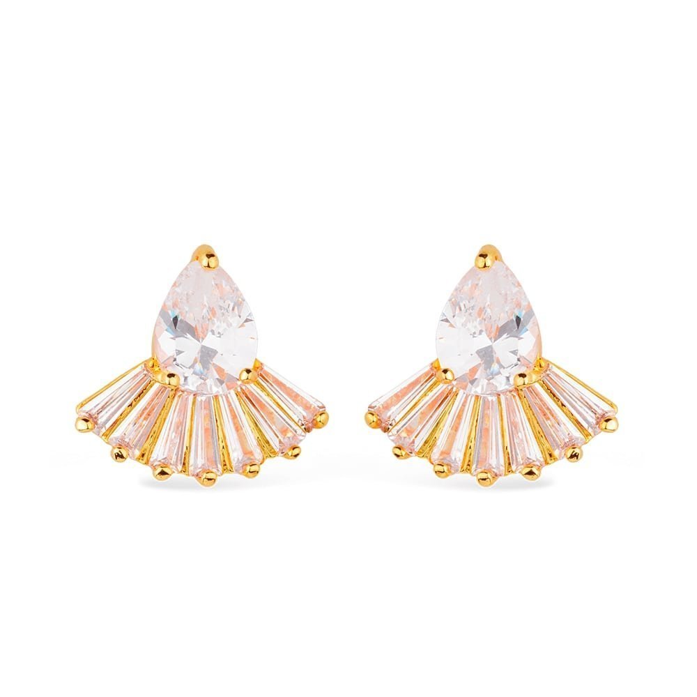 Brinco Dourado Gota e Coroa com 8 Pedras de Zircônia